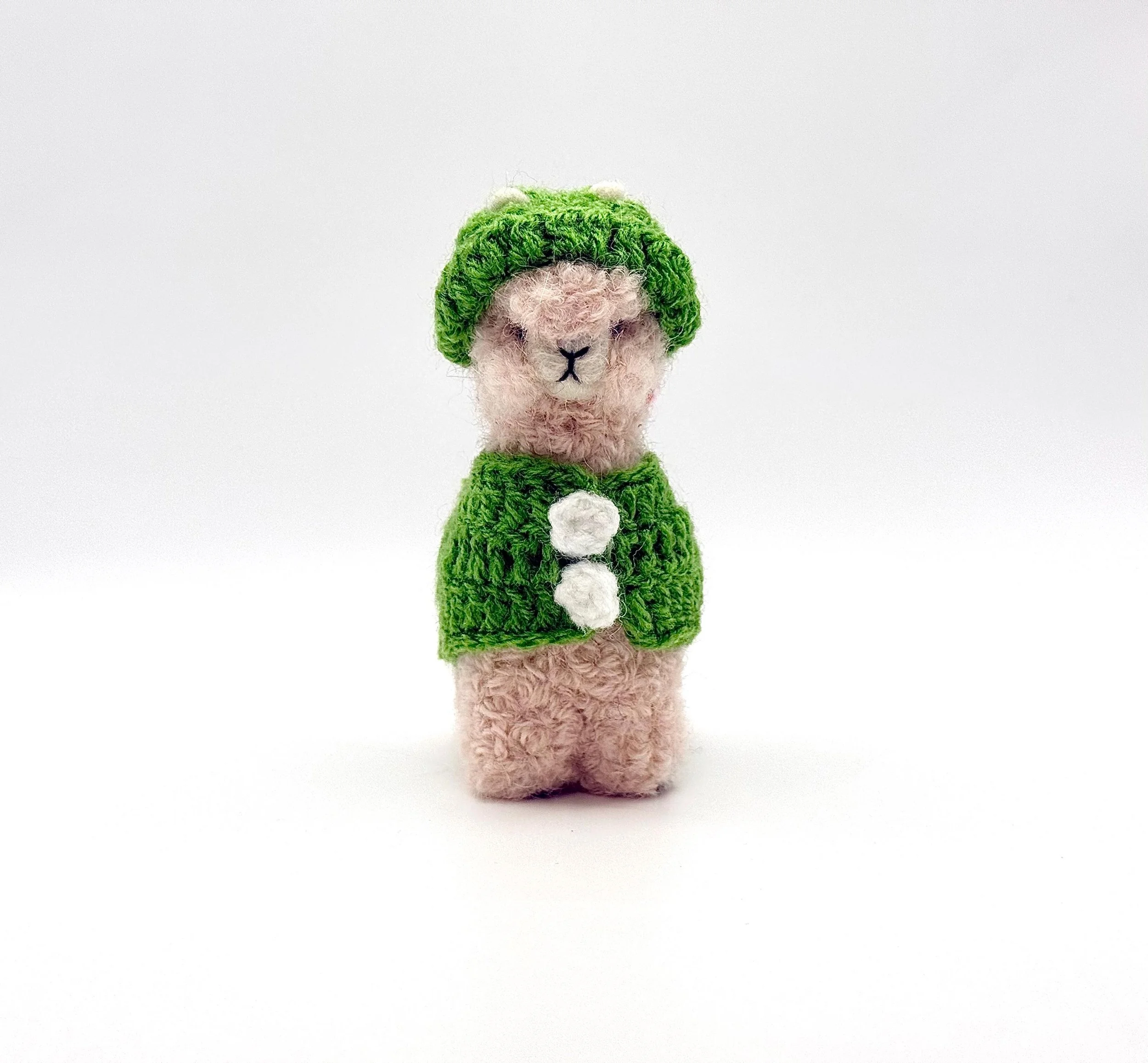 Cute alpaca figurine in olive color. Each one is needle felted in Peru using soft baby alpaca fiber.