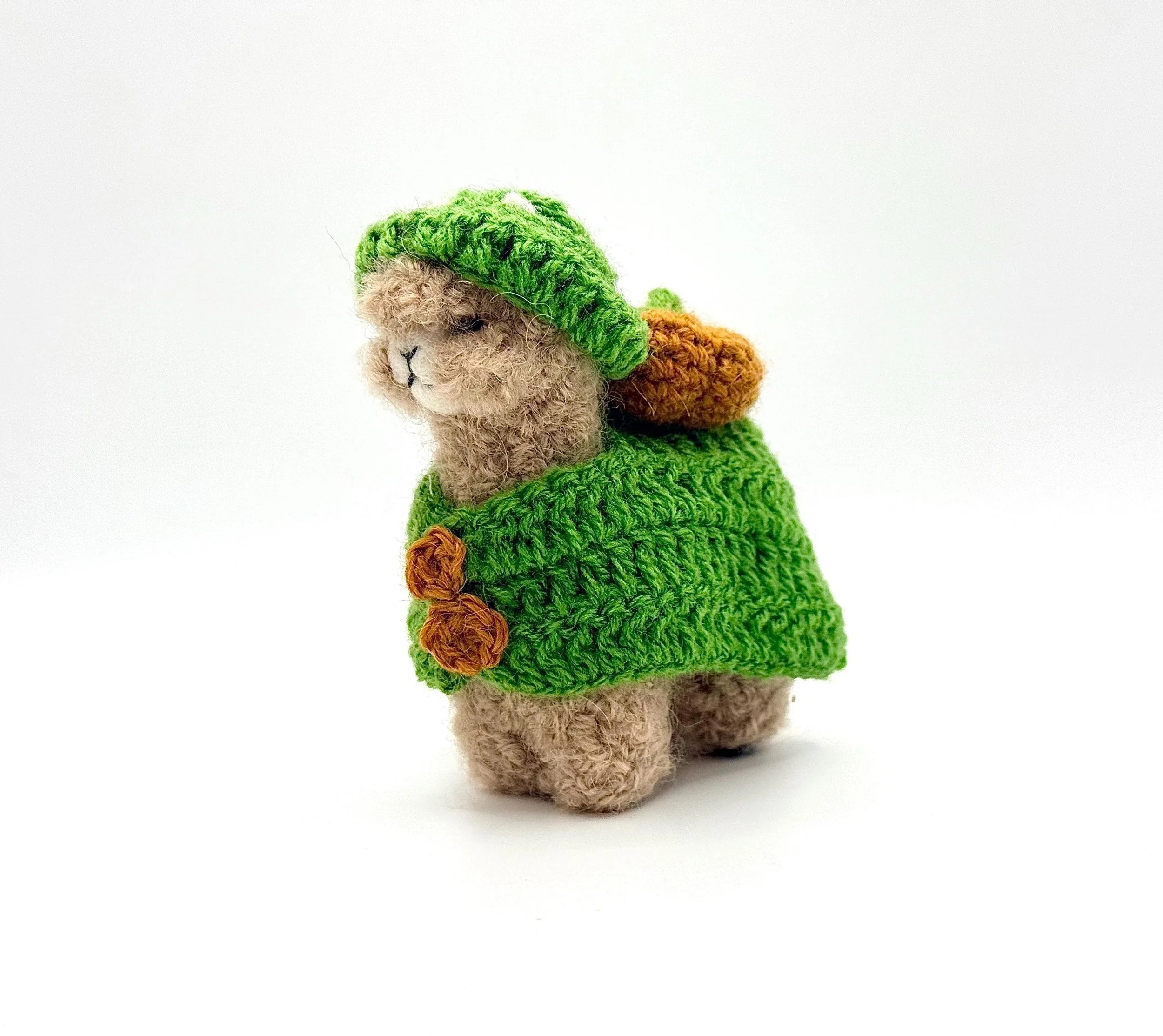 A fun alpaca with colorful felted dots. Each one is hand-felted in Peru from soft alpaca fiber. Choose Figurine for display or Keychain to clip on your bag or keys.